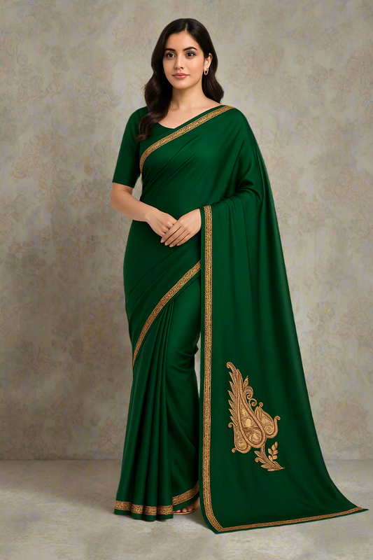 Omang Greenish Crepe Saree with Kashmiri Tilla Embroidery