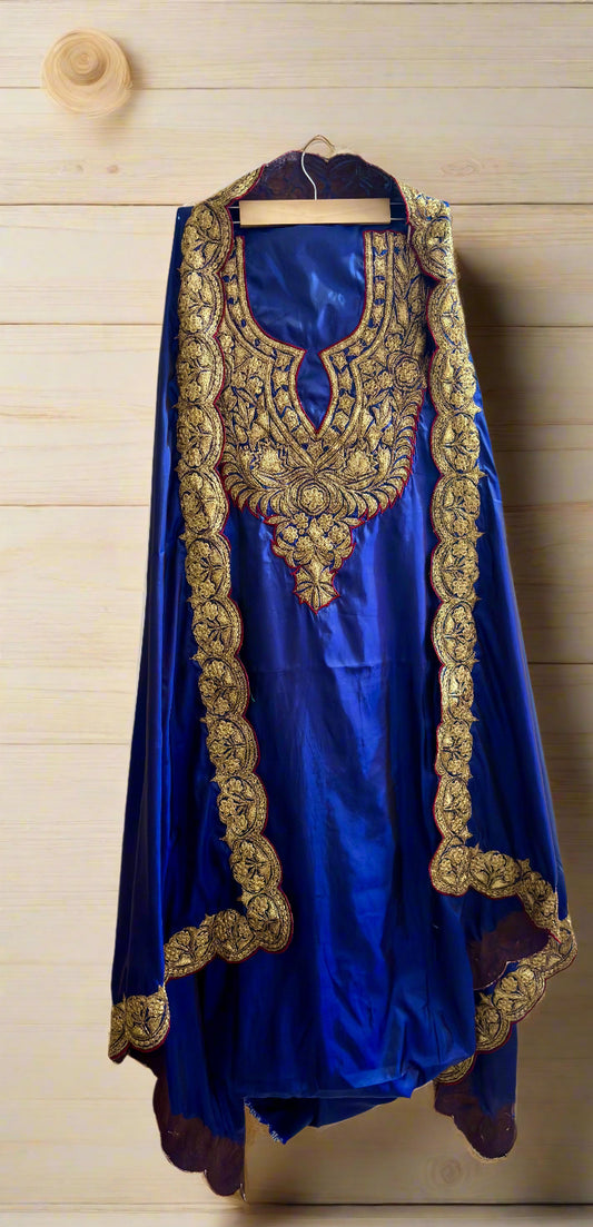 Nayna Royal Blue Unstiched Suit with Tilla Embroidery