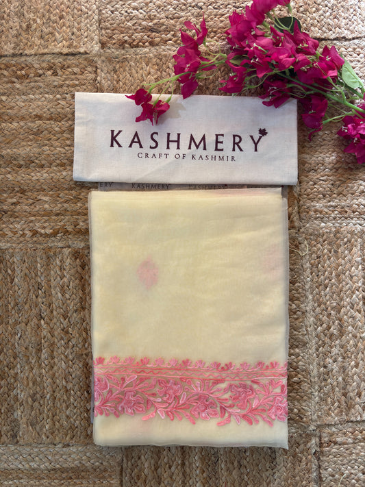 Noor White Organza Saree With Kashmiri Aari Embroidery