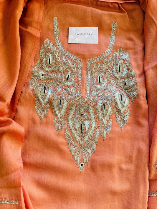 Premium Pastel Orange Unstiched Suit with Tilaa Embroidery