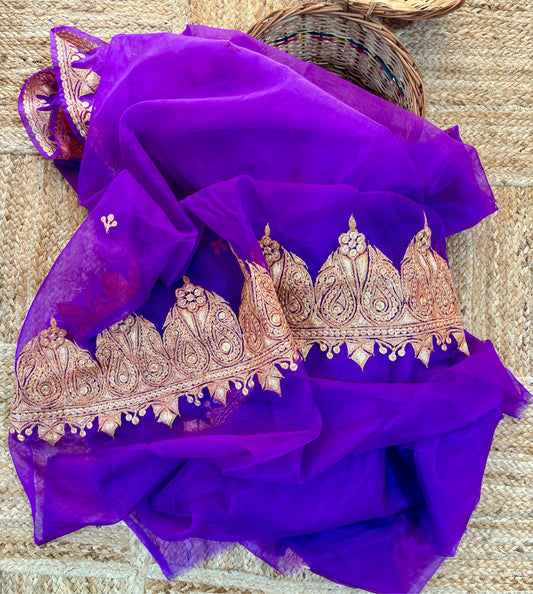 Madhuri Purple Organza Saree With Kashmiri Tilla Embroidery