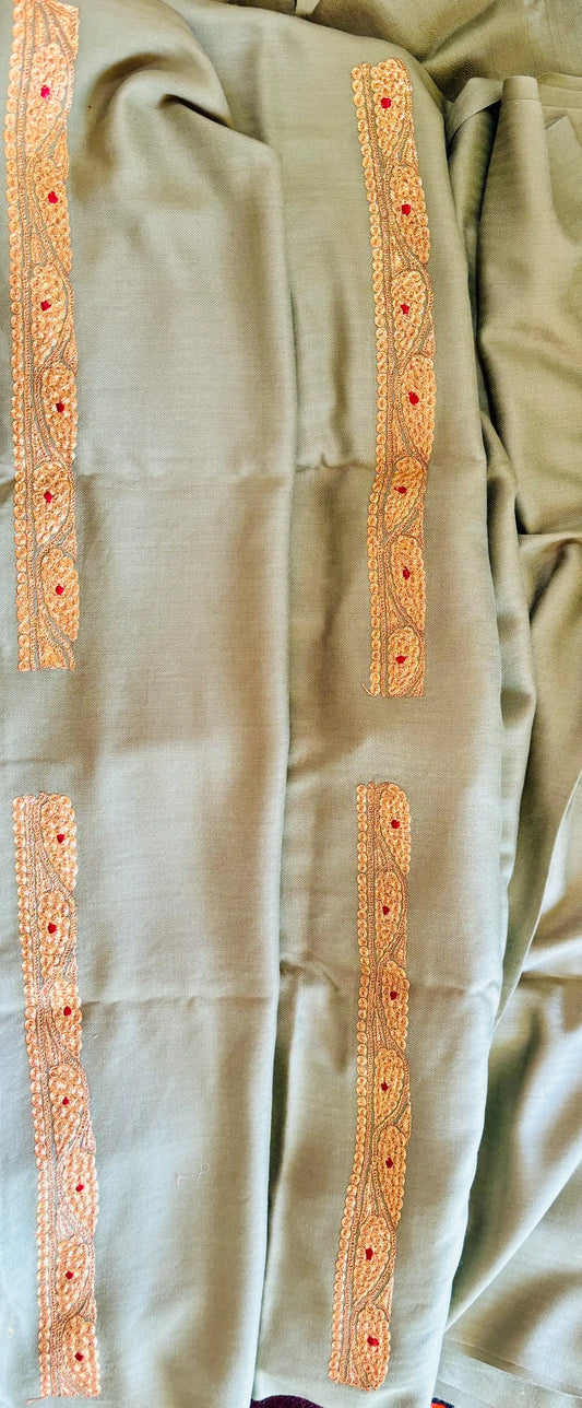 Omang Greenish Crepe Saree with Kashmiri Tilla Embroidery