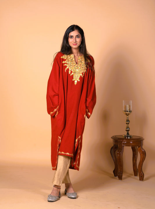 Sheen Royal Rust Maroon HandMade Aari Work Pheran