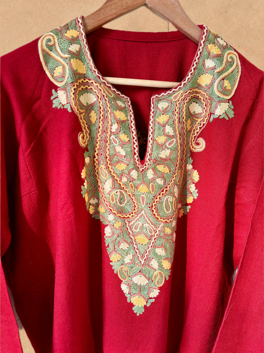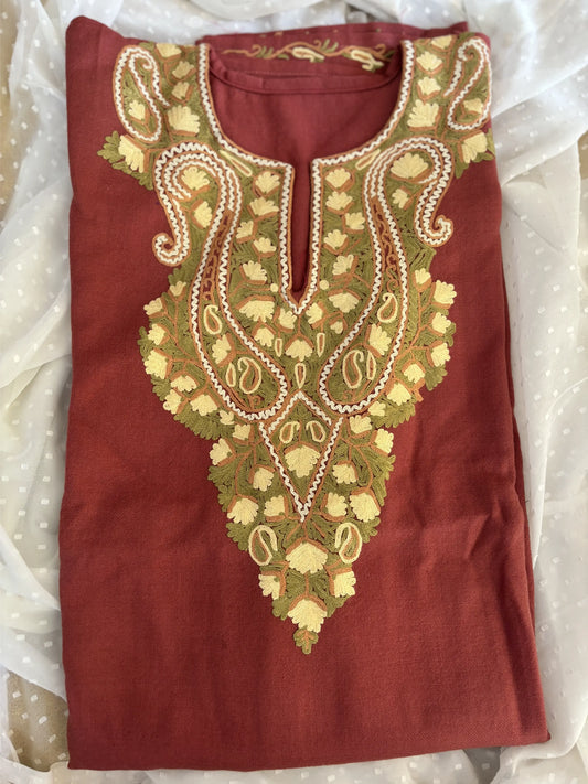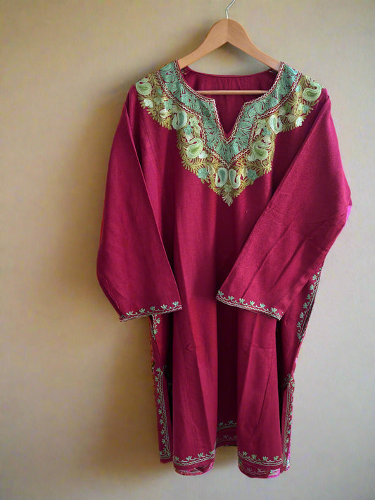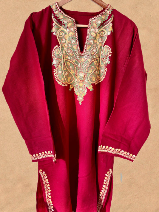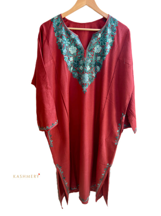 Sheen Rust Maroon HandMade Aari Work Pheran