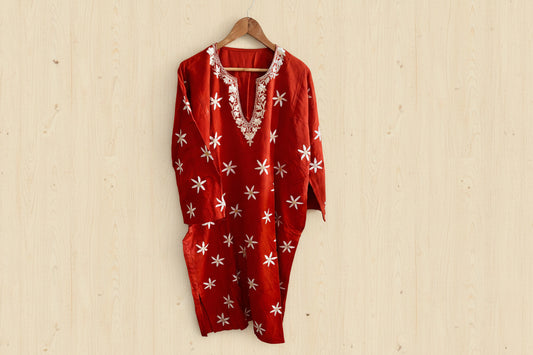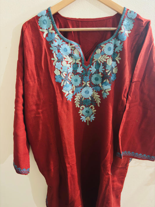 Sheeni Royal Rust Maroon HandMade Aari Work Pheran