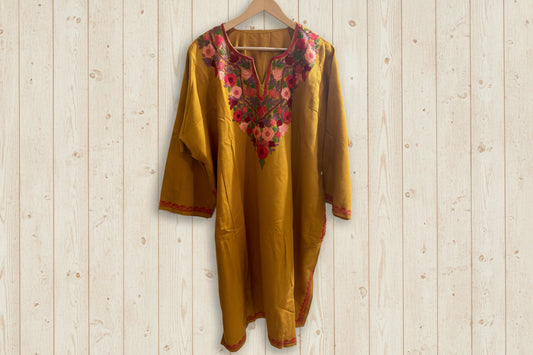 Sheen Mustard Brown HandMade Aari Work Pheran