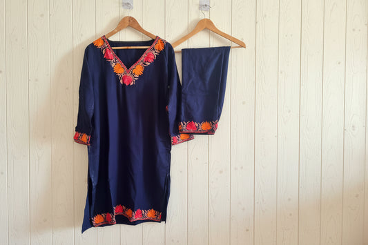 Gulaab Navy Blue Aari Embroidery Work Kurta Cord Set for Winter