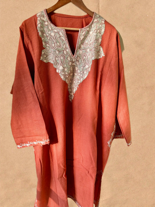 Sheen Rust Maroon HandMade Aari Work Pheran
