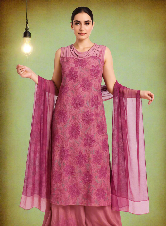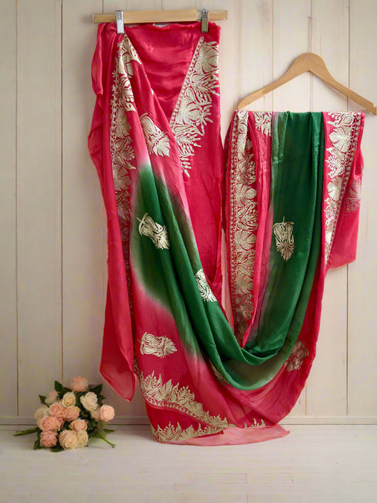 Heer Pastel Pink Kashmiri Silk Unstiched Suit with Thread Embroidery