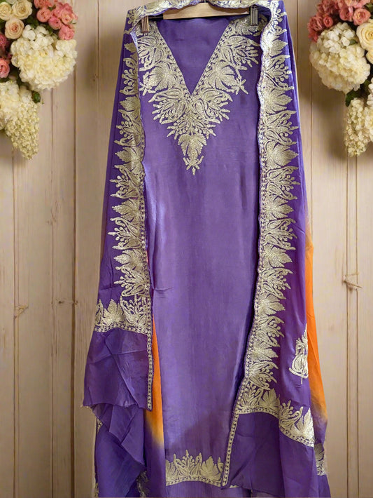 Sufianna Ferozi Unstiched Silk Suit with Tilla Embroidery
