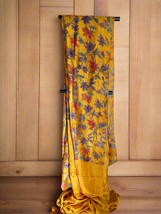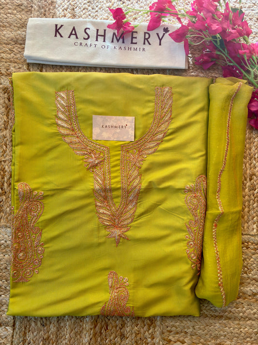 Heer Mustard Kashmiri Silk Unstiched Suit with Thread Embroidery