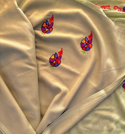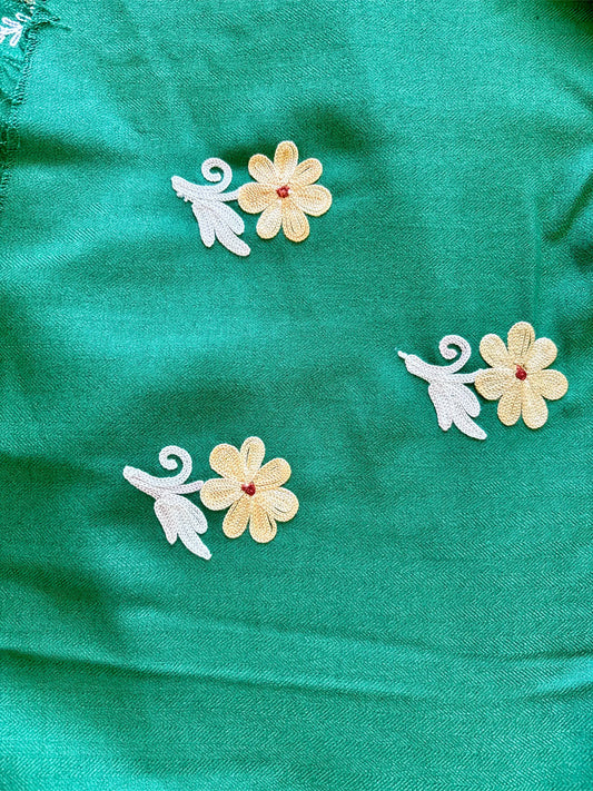 Green Unstiched Suit with Aari Embroidery