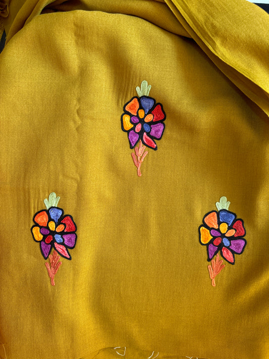 Mustard Unstiched Suit with Aari Embroidery