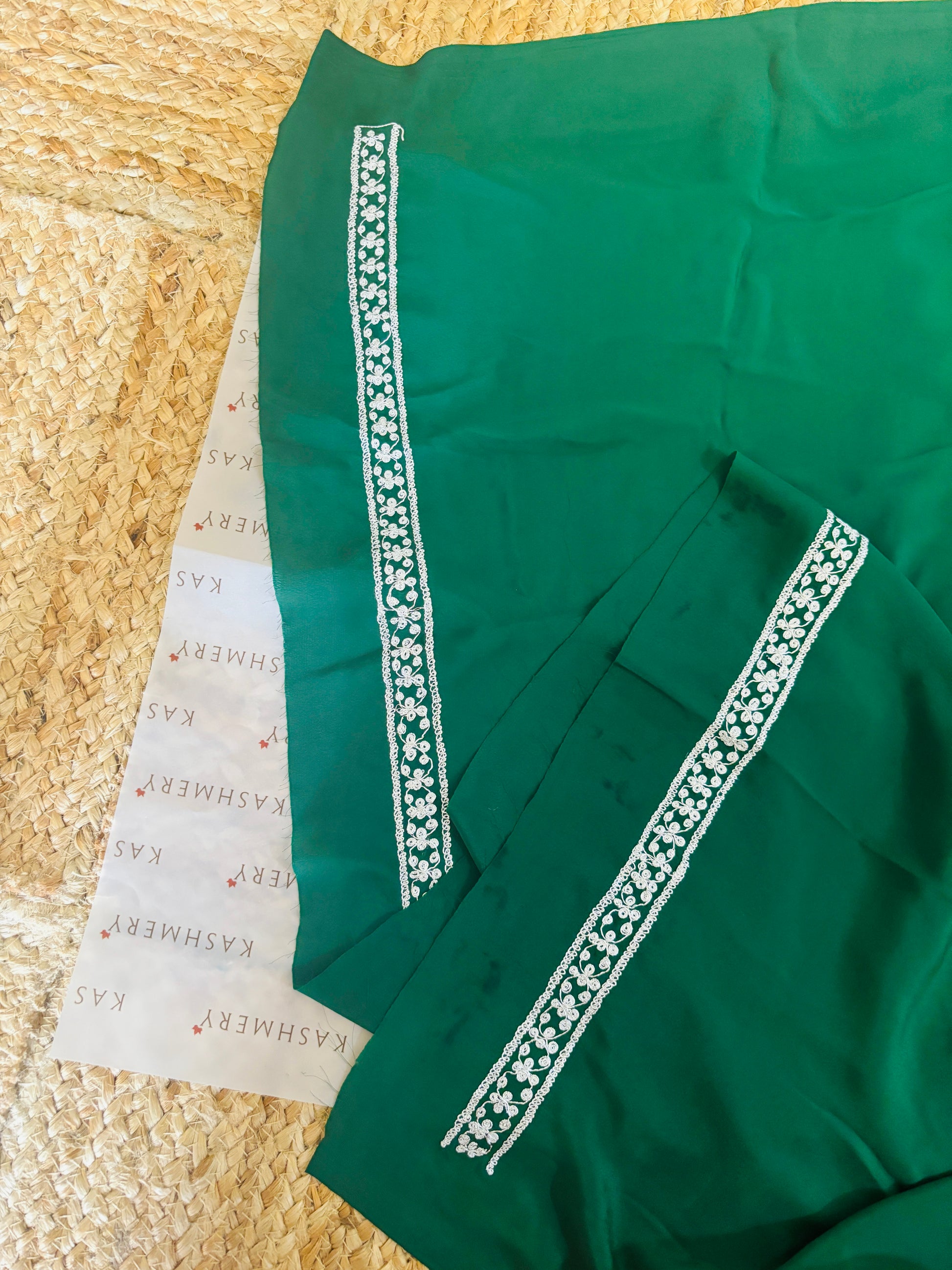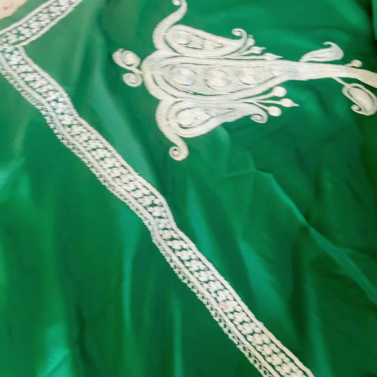 Omang Green Crepe Saree with Kashmiri Silver Tilla Embroidery